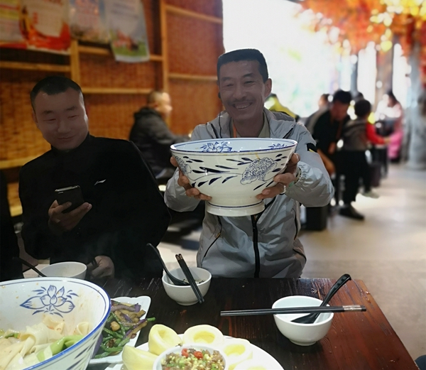 可能是因为雨天气候有些凉,人也会觉得饿得快些。早在火车上时,大家就在谈论那不胜枚举的西安小吃,凉皮、肉夹馍、镜糕、烤串、胡辣汤、羊肉泡馍,还有陕西传统面食BiángBiáng面、臊子面。实际到了有名的回民街,才发觉我们对西安美食的了解简直太过肤浅。人声鼎沸的街区,混合着各种美味飘香,让人食欲大开,一家又一家的“吃”过去,直呼好想问天再借几个胃吧……