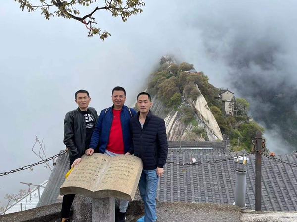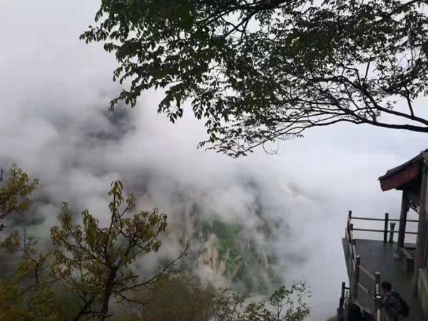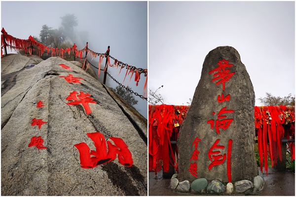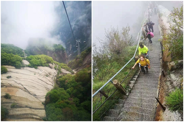 比起唐代遗迹,西岳华山更是此次行程中我们一行人心之飘荡的向往之地。在这里不得不感谢天公作美,接连两天的阴雨于今日,停了!雨后的怡人空气,让在华山脚下等候的我们不禁有些迫不及待起来……在上索道之前,导游一再叮嘱大家:“自古华山一条路,山情险峻,一定要注意安全。”
