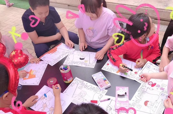 晋丰大厦项目在这个充满童趣的日子,精心准备,将活动区域分为两大块。一边是生活元素区,由物业联合“名媛美发学院”和口腔诊所为小朋友们义剪义查。另一边是妙趣横生的儿童游乐区。你看,“小猫捉鱼”的游戏不仅吸引了小朋友的关注,大人也都玩得不亦乐乎。更夺人眼球的要数物业工作人员为孩子们提前准备好的建党100周年红色“发卡”,带着这抹耀眼的红色,多才多艺的孩子们大方地为众人上演着一段段即兴表演。在融入党建元素的蜡笔涂鸦中,他们用绚丽鲜艳的色彩,以画传情,表达了童心向党,对祖国的满腔热爱。