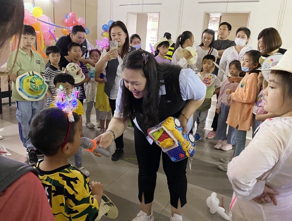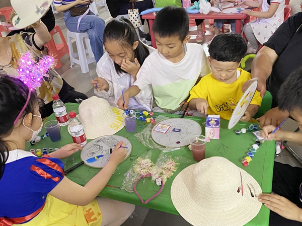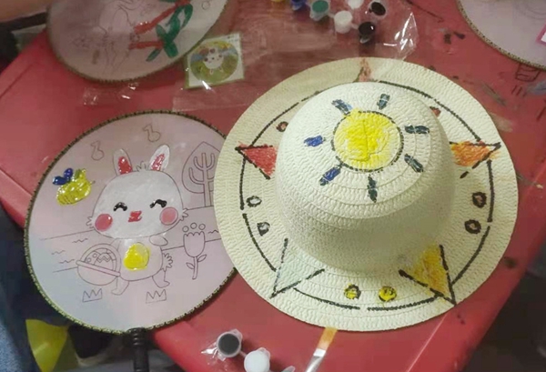 最后,将我们的镜头带入金轩项目,那里早已是一片欢乐的海洋。由家长和孩子合力完成的互动游戏“踩气球”在追逐嬉戏中落幕,项目经理王敏娜正在为游戏中将气球保护得最好的小朋友颁奖,拿到礼物的孩子都分外开心到手舞足蹈。当然,没拿到奖品也没有关系,物业公司还准备了美味的蛋糕和现场作画涂色的活动,即让孩子们在扇子和草帽上自由创作。碧水蓝天、绿草青青、七彩太阳花、卡通小熊……孩子们在小扇子和小草帽上尽情畅想,画着属于自己的梦。
