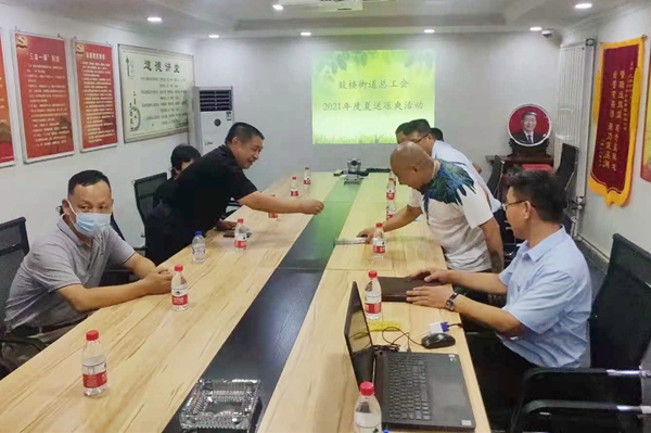 “物业工作者不畏酷暑、尽职尽责,大家辛苦了!”这一天,鼓楼街道党工委侯书记和街道工会主席来到天津公司,将价值11600元的购物券交到天津公司总经理梁洪利手中,对在高温下坚守岗位的物业员工表示衷心的感谢和慰问。同时就目前的德尔塔病株疫情,要求务必切实做好防护工作,保证人身安全。
