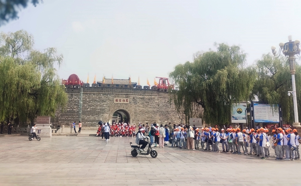 游览完济南三大名胜之二,于旅途第二天,小伙伴们乘车前往孔子的故乡曲阜,游玩依旧是直奔主题模式:孔庙、孔府、孔林。到达三孔景区前首先会看到的是万众瞩目的万仞宫墙,在宫墙前驻足的片刻,嘉人遇到了不少同来游学的小朋友,让人不禁念起“学而时习之,不亦说乎?有朋自远方来,不亦乐乎?”的《论语》名句。