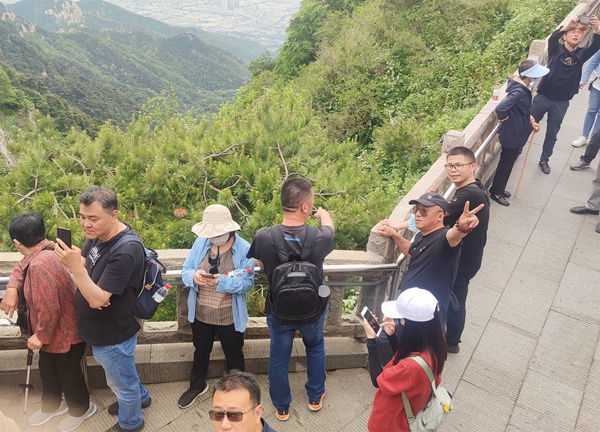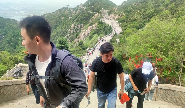 虽然登顶可有三条路线供选择,但是嘉人们都十分默契地选择了最省力的同一路线—到中天门乘缆车前往南天门再登玉皇顶。嘉人说,登顶后突然领会到杜甫《望岳》中“会当凌绝顶,一览众山小”的名句,整个泰安城尽收眼底。