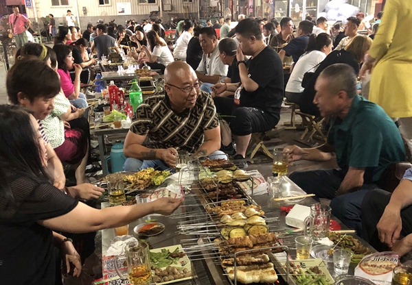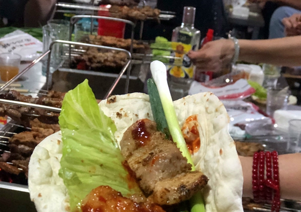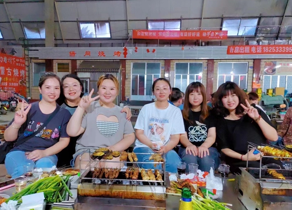 要说来到淄博,必不可少的自然是今夏火爆出圈的“一顿小烧烤”。从周村归来稍息片刻,天津公司执行董事梁总与大家会合,带上所有人,进淄赶“烤”啦!作为此次旅游的重头戏,天津一行人到达了当地最有名的烧烤店。小饼、烤串、葱和蒜,俗称灵魂三件套,还可外加些去腻的生菜,卷起来……烟火气、下酒菜、小串滋滋冒着油,畅聊言欢的沸腾夜晚徐徐打开,这无穷的欢乐,只与博华人相关。