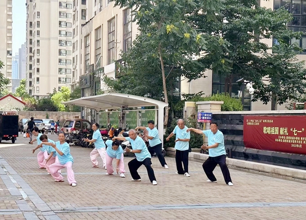 上午10时演出正式开始,扇子舞、民族舞、诗朗诵、大合唱,仿佛打开了精彩纷呈的演出“魔盒”。阿姨们全情投入地展现着自己的风采,也舞出了建党百年后祖国的安宁稳定和人民群众多姿多彩的幸福。当然,为党庆生的节目不仅局限在晋丰大厦项目。傍晚,由天津市残疾人福利基金会、联合会主办的“迎七一颂党恩”活动在新隆轩项目拉开帷幕,京剧、歌舞表演深受现场所有人的喜爱。